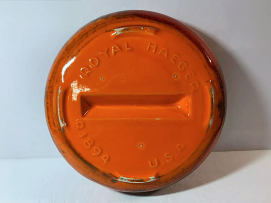 Round Ashtray 7" circa 1959-1971, Etruscan Orange glaze, photos courtesy j1santiq on eBay