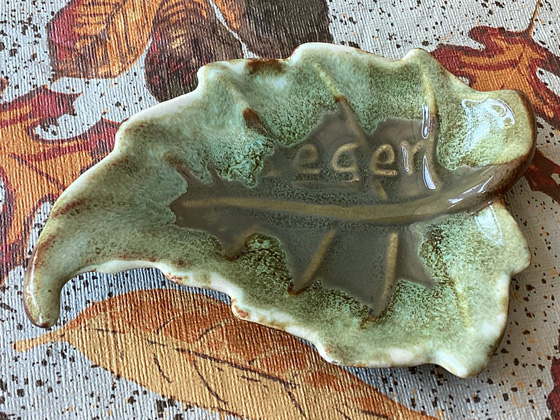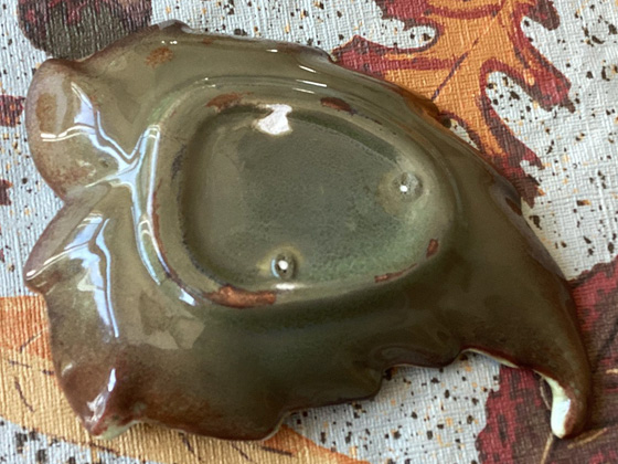 Leaf Ashtray 5", see Note for circa, Green Crystal glaze, photos from the collection of Michael Bono