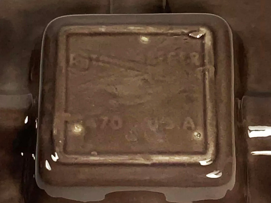 Cube Checked Ashtray 6" circa 1949-1954, Pearl Gray glaze, photos courtesy goddessroxy-2009 on eBay